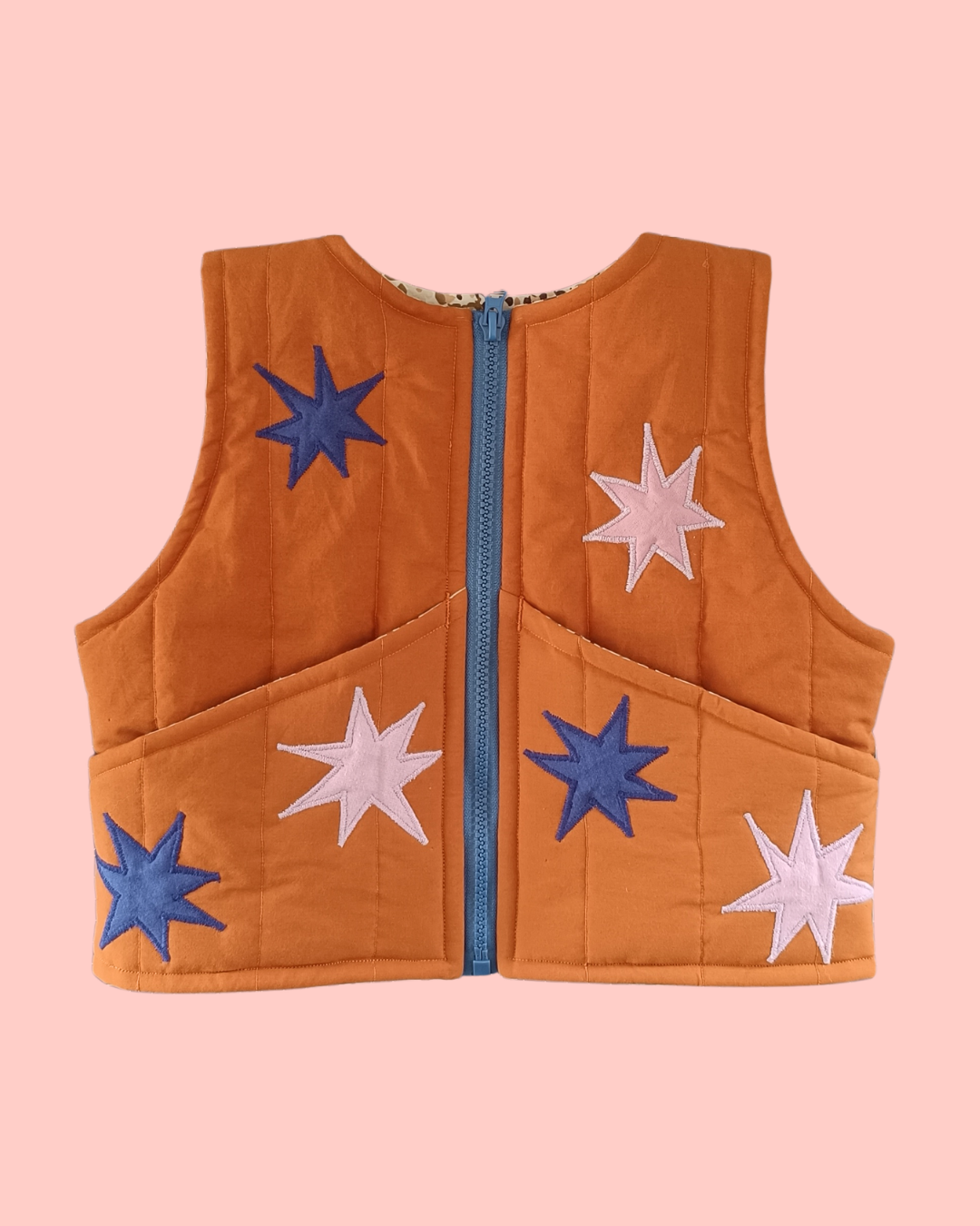 Kamizelka uszyta została z tkanin z drugiego obiegu, precyzyjnie wyselekcjonowanych, wypranych w środku do prania dla alergików i dzieci od pierwszego dnia życia.