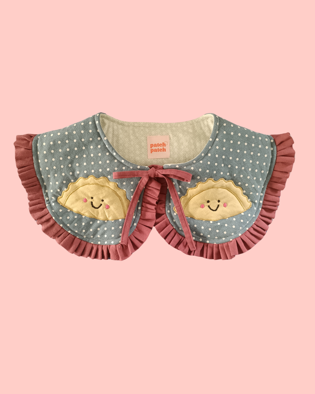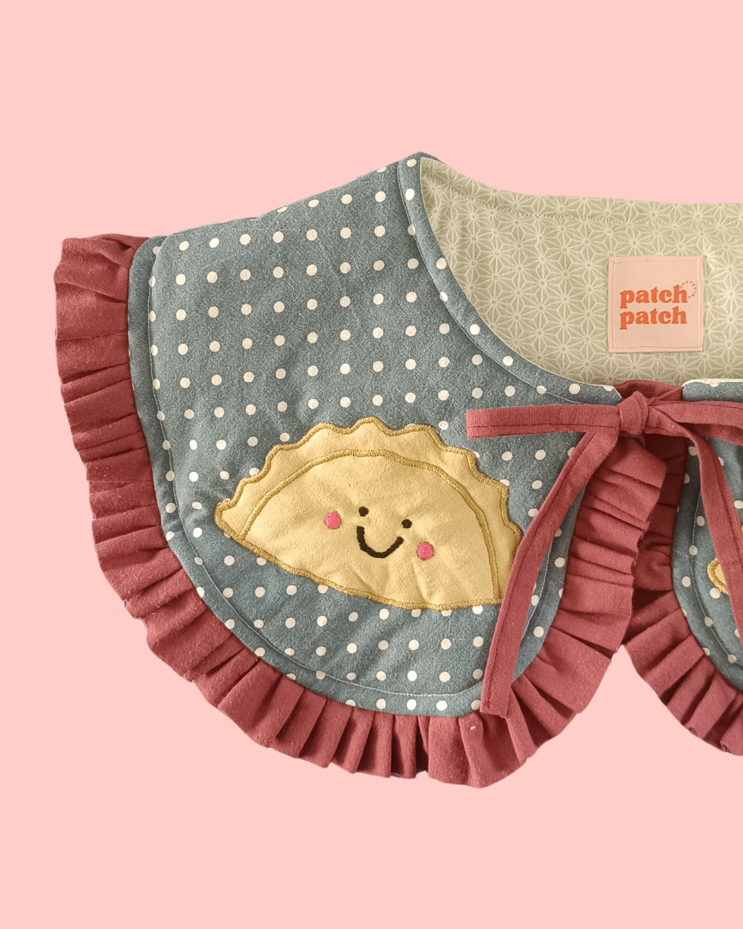 Mięciutki, wiązany kołnierzyk w autorski wzór pierogów.