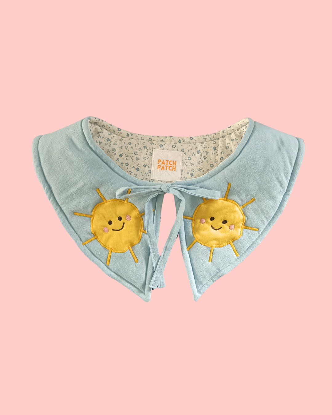 Mięciutki, wiązany kołnierzyk w autorski wzór słoneczek.