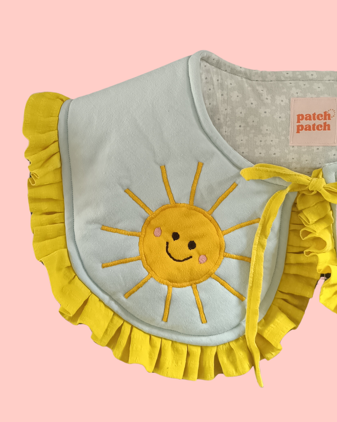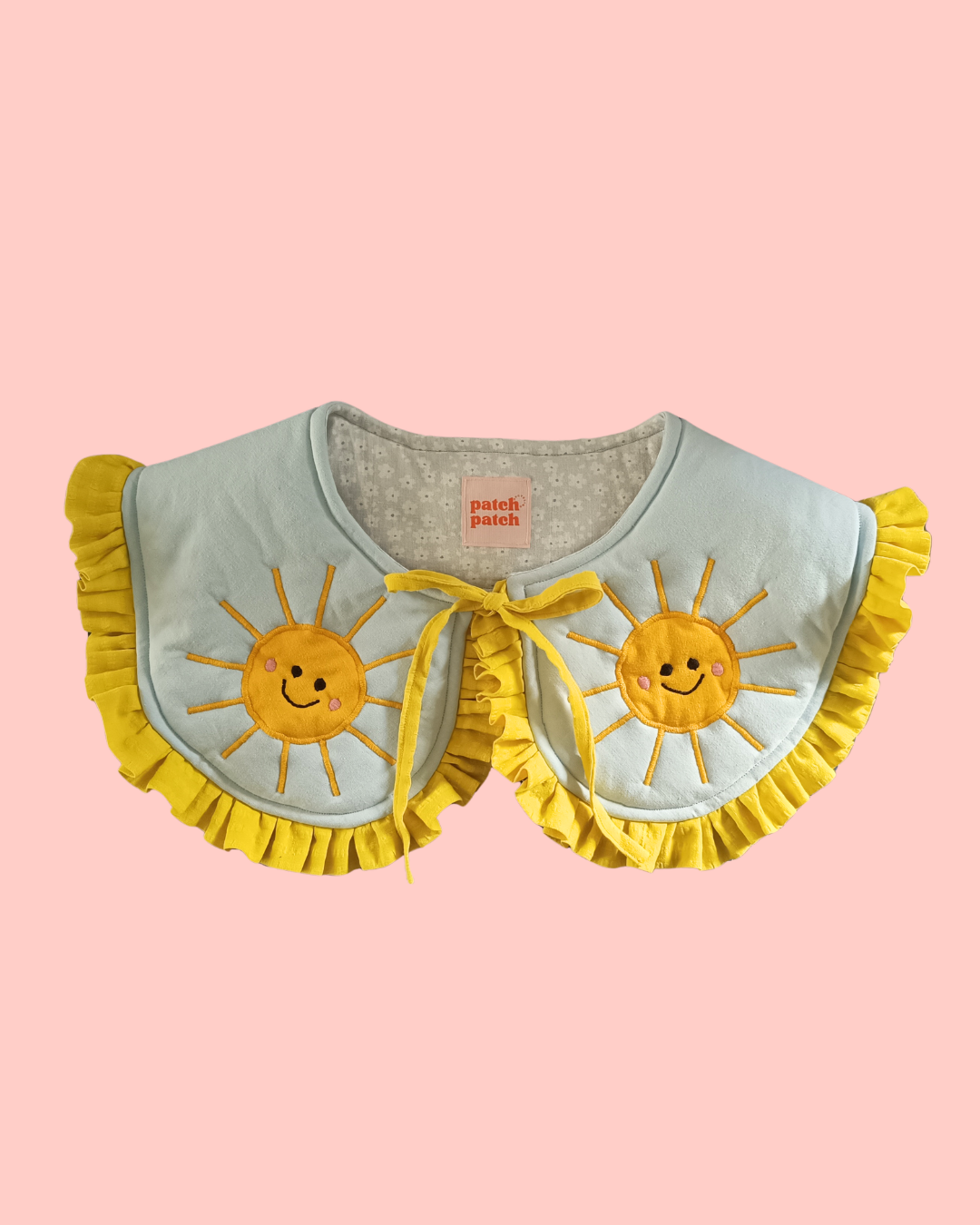Mięciutki, wiązany kołnierzyk w autorski wzór słoneczek.